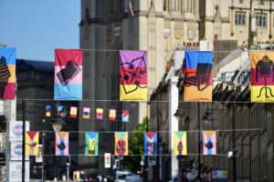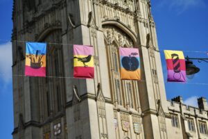 This summer, one of Bristol’s most iconic neighbourhoods bursts into life with colour, creativity and community celebration. From Tuesday 8 July, PS. With Love – a bold new public art installation – will bring vibrant flags and banners to Park Street, Queen’s Road, The Triangle and College Green, inviting people to rediscover the stories and symbols that shape the area. Alongside the installation, a packed calendar of exhibitions, performances and cultural events will animate venues across the street throughout July and August.