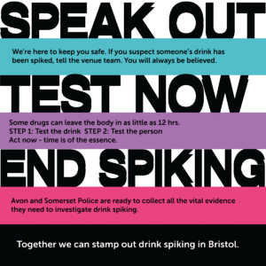 We’ve partnered up with the Bristol Nights, Avon and Somerset Police and Bristol City Council to raise awareness and tackle drink spiking across Bristol venues.