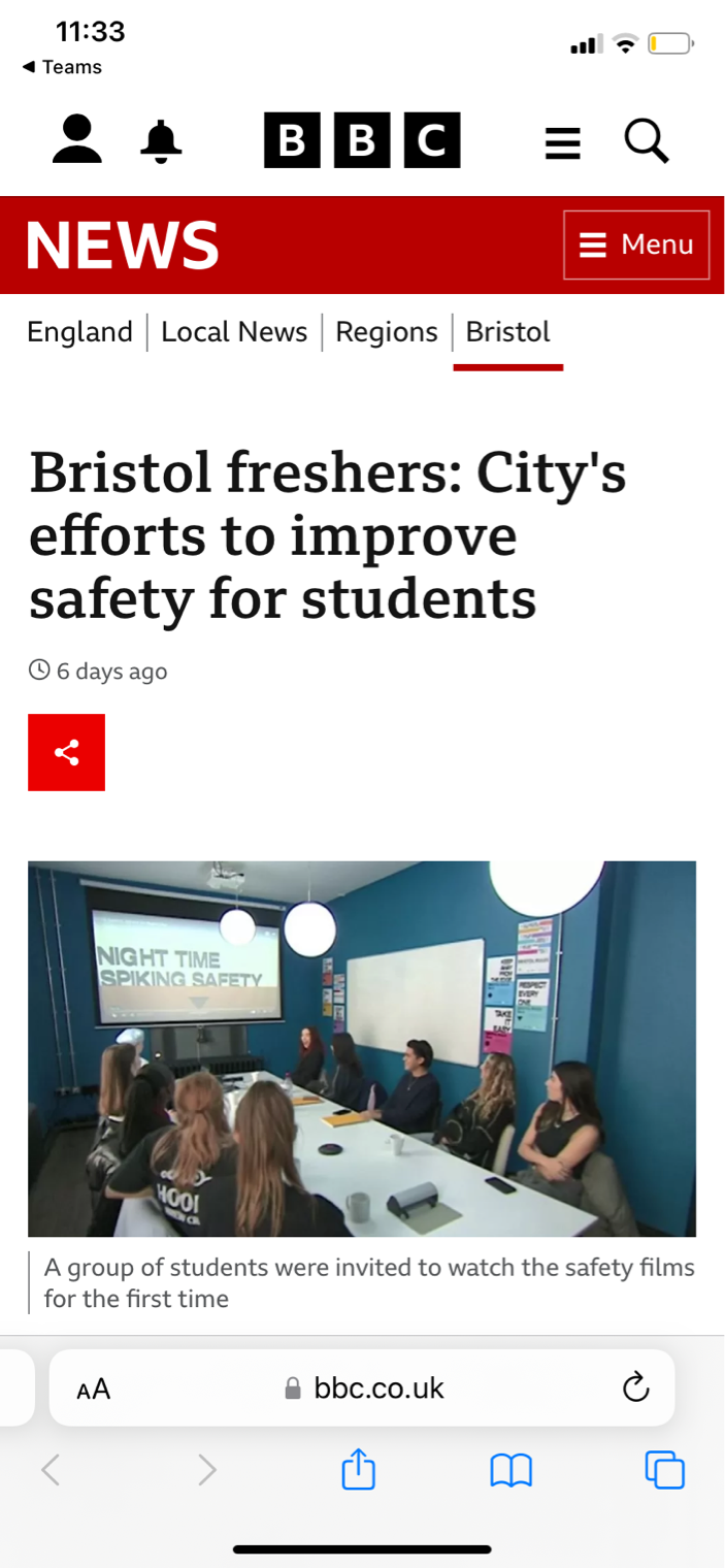 Working with Bristol City Council, Avon & Somerset Police, UoB, UWE and Bristol Nights to help keep students safe in our city.