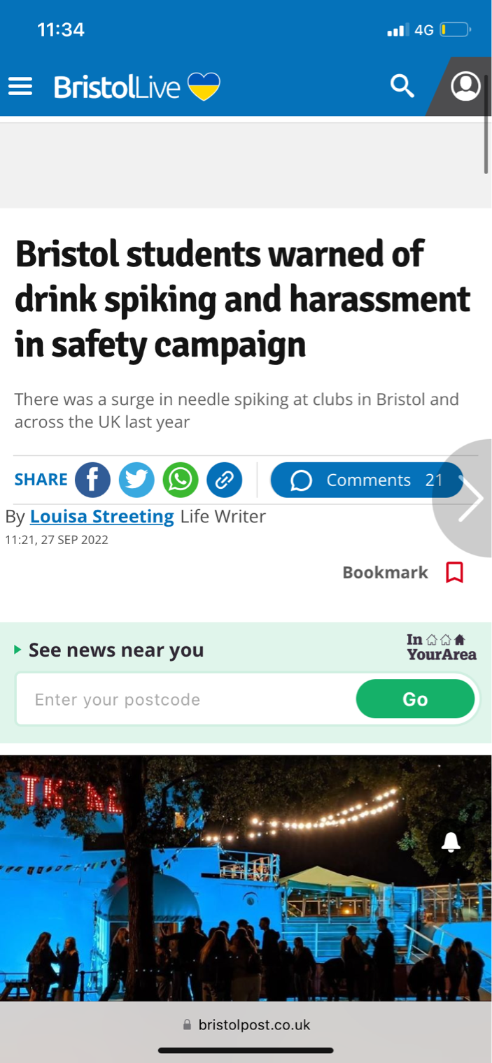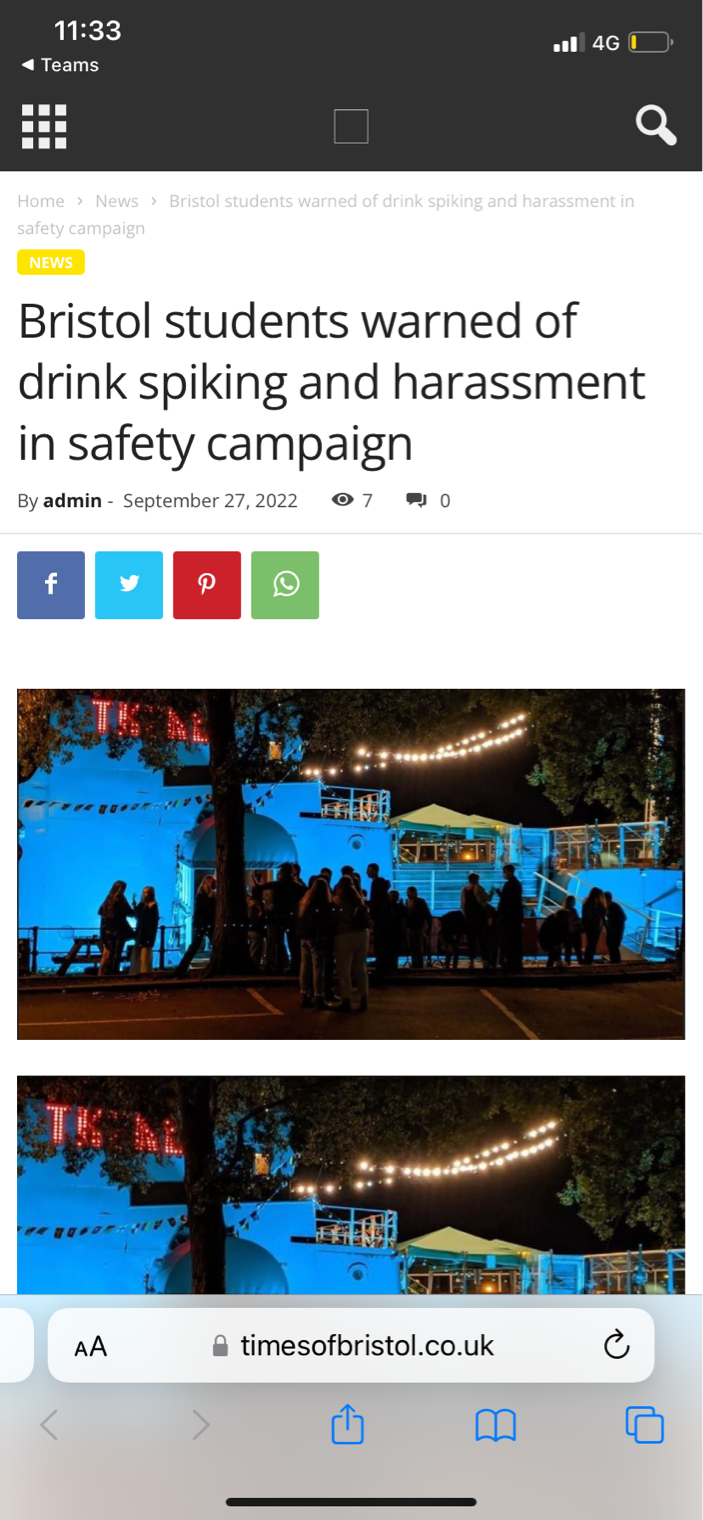 Our work with Bristol Nights promotes a safe and enjoyable space for everyone whilst providing students, residents, and night-time economy staff with essential information to keep everyone safe.